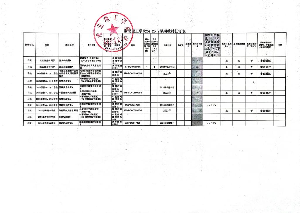 koko体育官网2024-2025学年第二学期教材选用情况公示