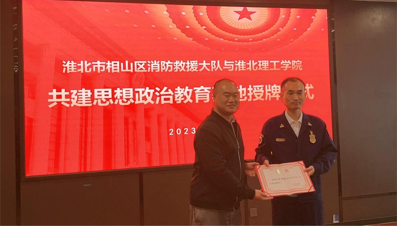 为积极贯彻落实习近平总书记关于“大思政课”建设的重要指示,扎实推进思想政治教育实践基地共建工作走深走实。4月20日下午,淮北市相山区消防救援大队走进koko体育官网开展结对共建暨“思想政治教育基地”授牌仪式。koko体育官网副校长郑来纪、后勤处处长程坚出席活动,此次活动由koko体育官网院长助理陈志操主持,koko体育官网全体教师参加活动。