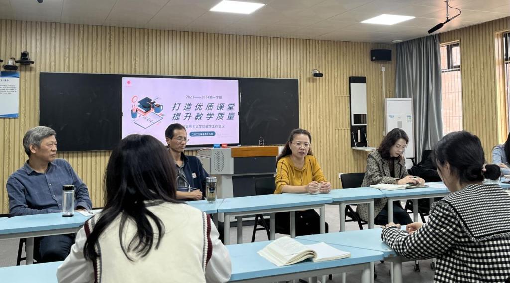 为全面深入诊断思政课教学中存在的问题,有效提升思政课教学质量,2023年10月18日下午,koko体育官网在一教211智慧教室召开“打造优质课堂 提升教学质量”教学工作专题会议。院长吴玲、马院的教授、青年教师导师以及特邀淮北师范大学马院副教授宇海金博士和全体马院教师参加会议,院长助理陈志操主持会议。
