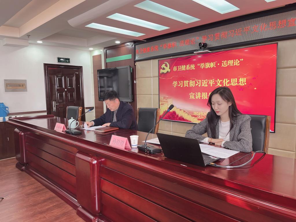 为深入学习贯彻习近平文化思想,奋力打造习近平文化思想生动实践地,加快建设繁荣兴盛的文化强市,3月21日下午,koko体育官网孙澄澄作为淮北市委宣讲团成员,走进淮北市卫生健康系统开展“举旗帜·送理论”专题宣讲活动,作题为《深入学习贯彻习近平文化思想·加快建设繁荣兴盛的文化强市》的宣讲报告。