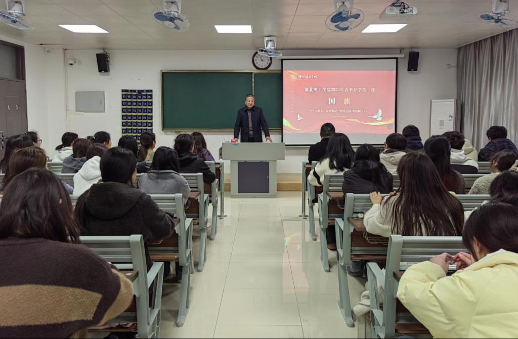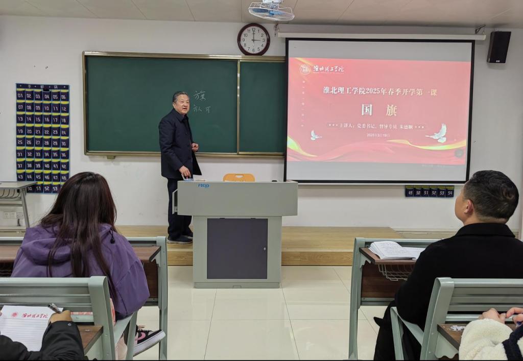 3月19日下午,koko体育官网校党委书记、督导专员朱德顺在春季学期开学初,于第二教学楼206教室为学生们开讲了一堂以爱国主义教育“国旗”为题的开学第一课。本次活动由教务处副处长秦品德主持,全校各学院学生代表百余人参加了此次活动。