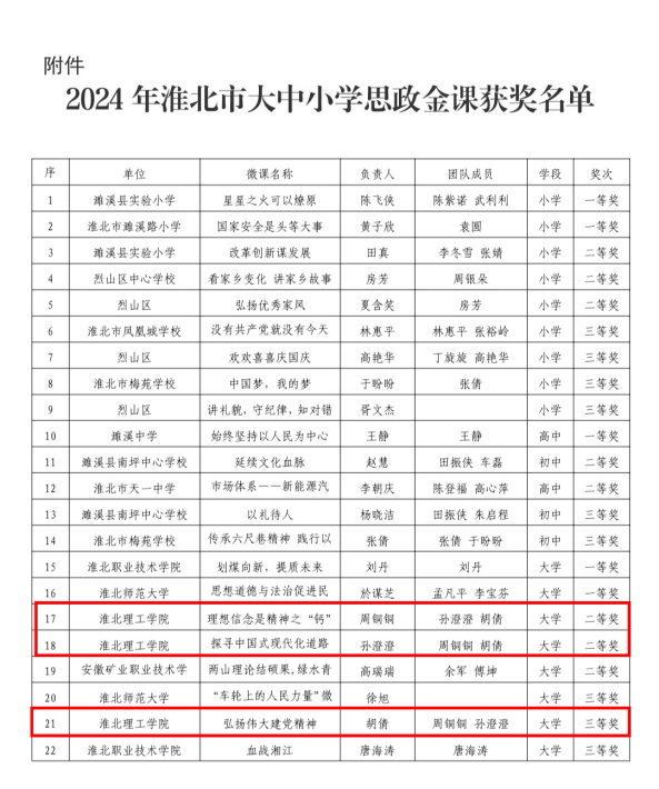 日前,在由淮北市教育局组织开展的党的二十届三中全会精神融入大中小学思政课金课评选暨思政课教学展示活动中,koko体育官网孙澄澄、周铜铜、胡倩等三位思政教师凭借创新的教学设计和精彩的课程呈现,在大学组评选中分别荣获二等奖、三等奖,展现了我校思政教师的卓越风采。