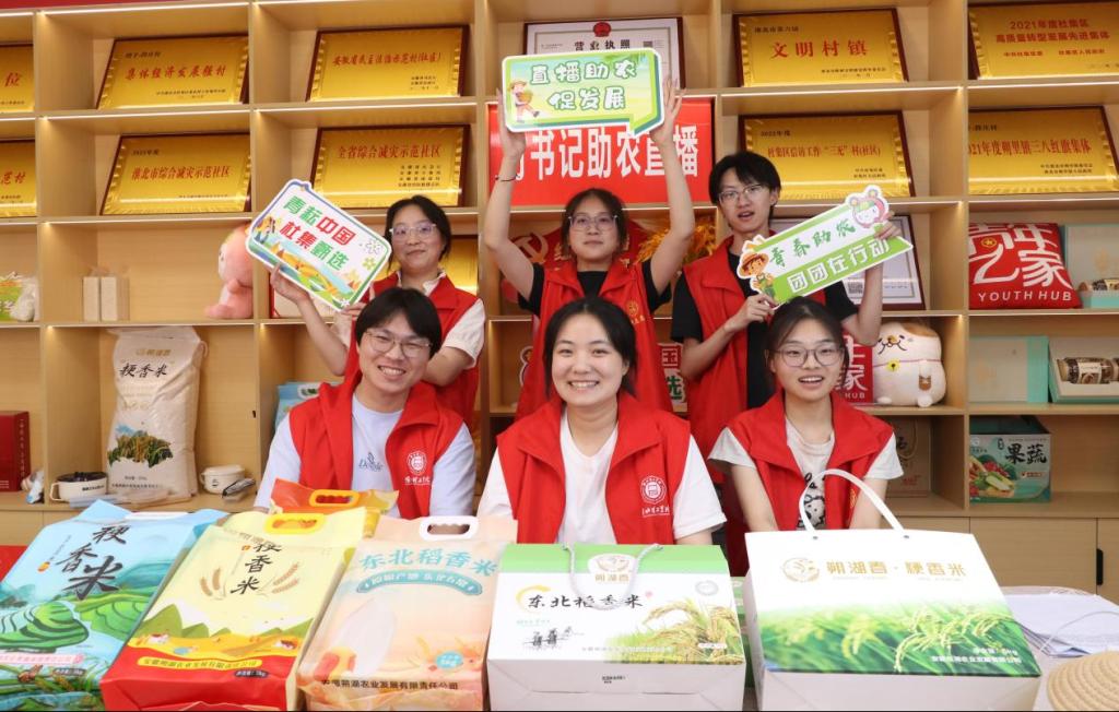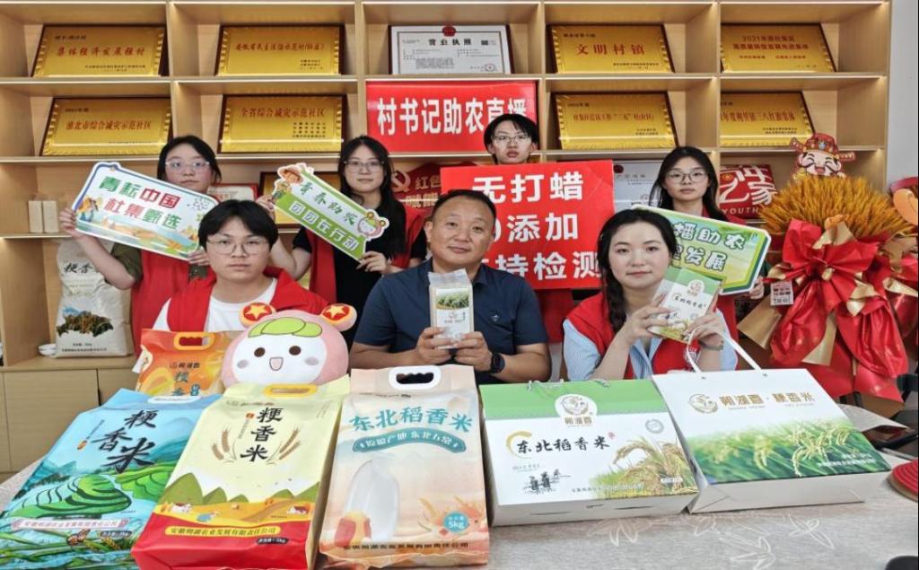 “家人们,这袋朔湖春·粳香米来自段庄村的生态稻田,脱壳、分拣全流程透明化,水雾抛光,无打蜡、0添加、可追溯,每一粒都藏着乡亲们的汗水……”在朔湖米业直播间里,学生们化身“理论宣讲员+助农主播”,既用专业术语介绍稻米品质,更用朴实语言讲述着乡村振兴故事。丁杰书记也走进直播间,与大学生们一同推介农产品。这场“理论+实践”的直播,不仅是带货,更是一堂鲜活的“乡村振兴思政课”,让学生们在与村民的互动中理解“共同富裕”的内涵,在销量增长的数字里体会“实践是检验真理的唯一标准”的深意。
