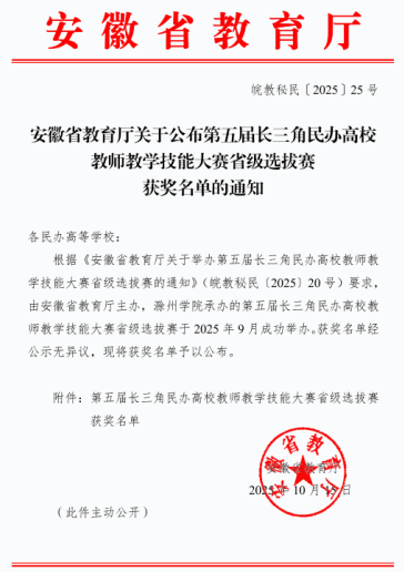 日前,由安徽省教育厅主办的第五届长三角民办高校教师教学技能大赛省级选拔赛结果正式公布。koko李邦老师凭借出色表现,在众多参赛教师中脱颖而出,取得思政中级及以下职称组三等奖的优异成绩。