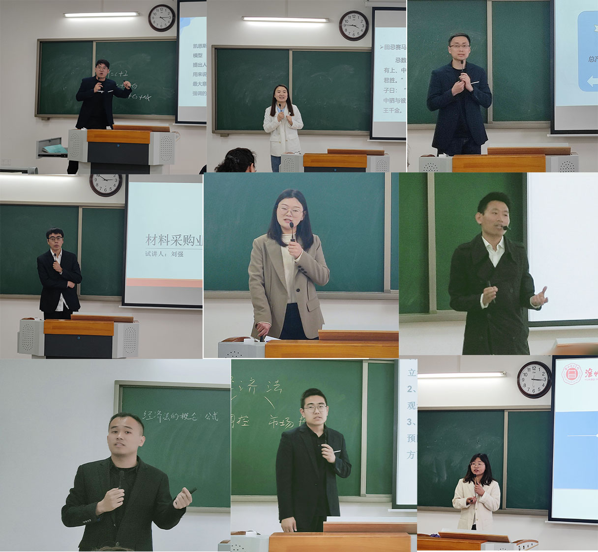 为更好的推动课堂教学质量的提高,全面提升教师教学能力,站稳讲台、打造金课,koko体育官网和经济与管理学院于4月13日下午1点50分在一教215教室组织开展了两种不同形式的教学展示评比活动暨首届青年教师课堂教学比赛的学院选拔赛,koko体育官网采用的“同课异构”比赛方式,经管学院采用微课展示比赛方式。本次活动由吴玲院长主持,两个学院全体教师参与,学校督导专员朱德顺和副校长汪建利坐镇活动现场进行观摩和指导。
