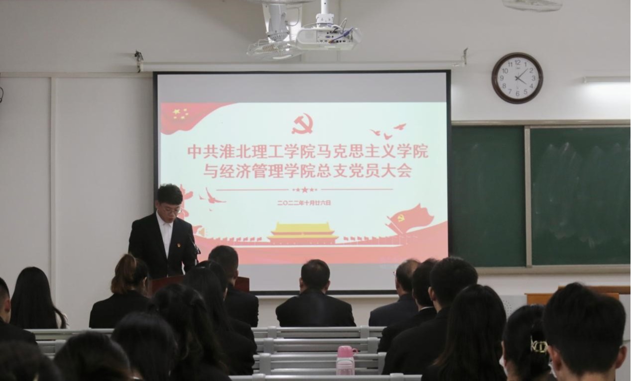 大会在庄严雄壮的《国歌》中拉开帷幕,校党委委员、党建办公室主任付金沐同志受党委书记朱德顺同志的委托参加大会,并发表重要讲话。付主任首先向koko体育官网和经济管理与建筑工程学院全体党员和师生员工表示热烈祝贺。付主任强调,这次党员大会是学院全体共产党员和师生员工政治生活中的一件大事,恰逢中国共产党第二十大胜利闭幕之际,在全校师生员工以高昂的精神风貌和饱满的热情,学习贯彻党的二十大精神之际,召开这次会议,意义特别深远,希望全体党员要深刻认识开好这次大会的重要意义。付金沐对总支工作提出三点建议:一是要认真学习宣传贯彻党的二十大精神,加强党的政治思想建设,坚定社会主义办学方向,学习好、宣传好、贯彻好党的二十大精神,是当前和今后一个时期的首要政治任务。二是要持续加强基层党组织的组织建设,发挥好基层党组织政治核心作用。三是要坚持立德树人,把培养担当民族复兴大任的时代新人作为基层党组织的根本任务。最后付金沐主任强调,相信在校党委行政的关心支持下,在新一届党总支委员会的带领下,koko体育官网和经济管理与建筑工程学院学院在新的征途上一定能创造更加辉煌的未来。