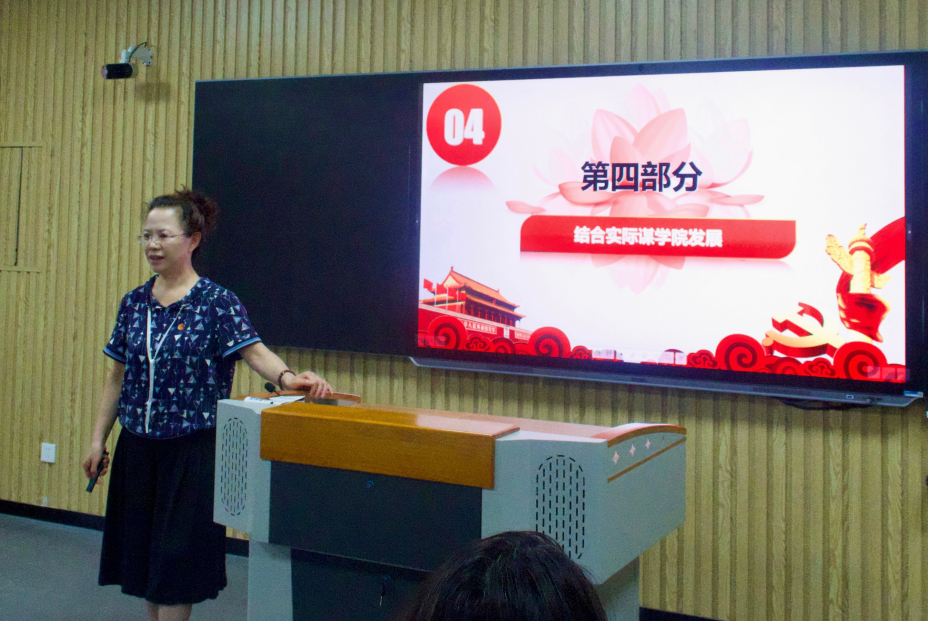 吴玲结合主题教育要求,做题为《把握新发展阶段 贯彻新发展理念 构建新发展格局》专题党课。她分别从准确把握新发展阶段、深入贯彻新发展理念、加快构建新发展格局、结合实际谋学院发展四个方面进行了深入浅出的讲解。吴玲指出,准确把握新发展阶段,深入贯彻新发展理念,加快构建新发展格局,具有重大理论与现实意义,为推动“十四五”时期高质量发展,确保全面建设社会主义现代化国家开好局、起好步。