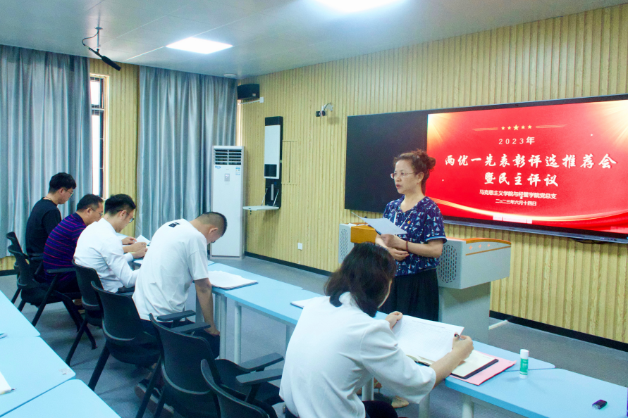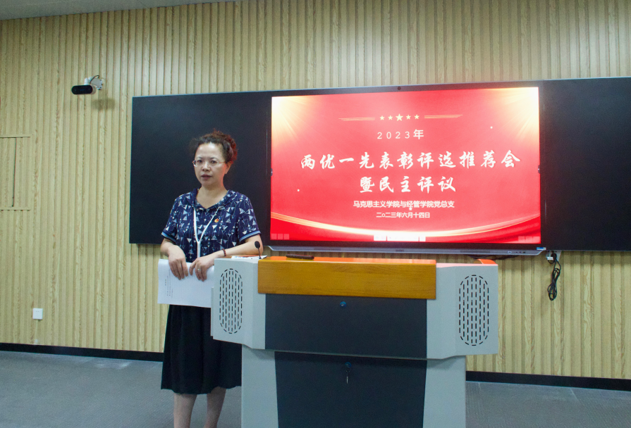 根据学校党委《关于开展2023年“先进基层党组织、优秀共产党员、优秀党务工作者”评选表彰活动的通知》精神,6月14日下午,koko体育官网与经济管理学院党总支组织召开“两优一先”表彰评选推荐会暨民主评议党员活动,总支书记吴玲主持会议,两个学院的全体党员教师参会。